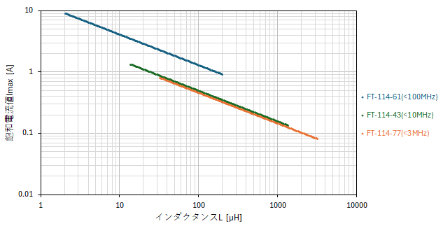 そのため、インダクタンス-飽和電流の関係は