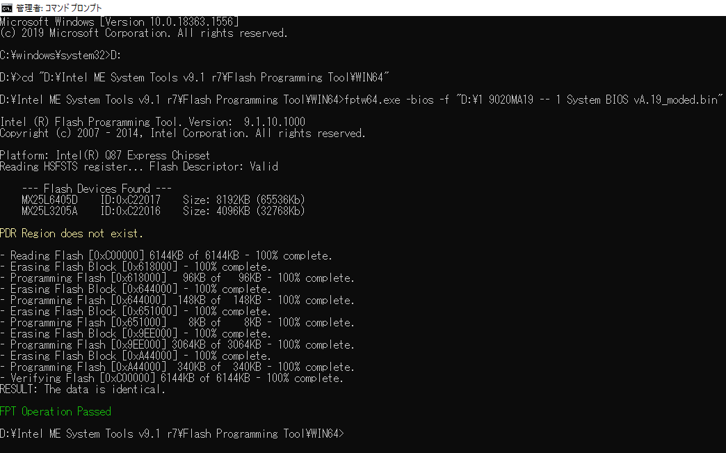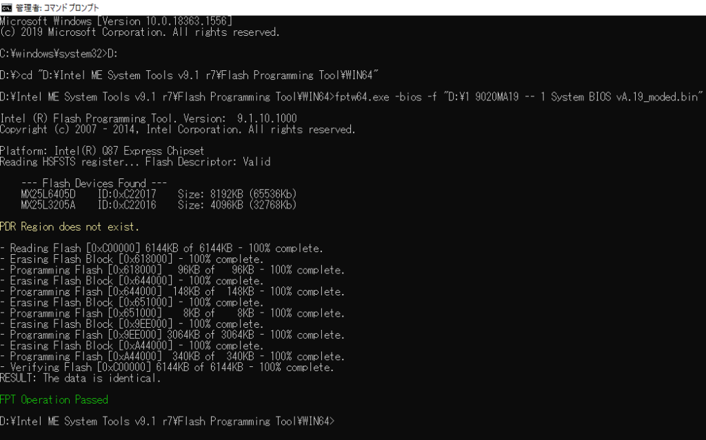 fptw64.exe -bios -f ダウンロードしたBIOSファイル